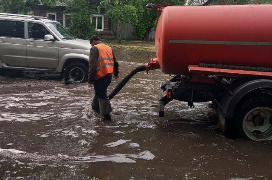 Фото: admblag.ru После ливня с градом , накрывшего Благовещенск 7 июня, сотрудники ГСТК вели откачку воды с подтопленных участков и прочищали забившиеся ливневые колодцы.