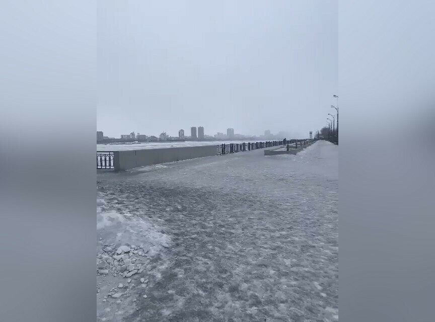 «Разве такое когда-то было?»: благовещенская набережная покрылась ледяной коркой