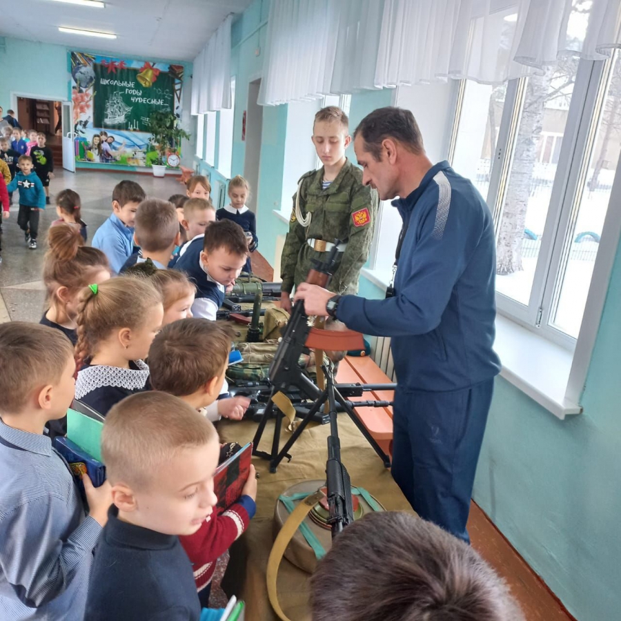 Выставка огнестрельного оружия прошла в школе с. Васильевка в рамках месячника военно-патриотического воспитания.