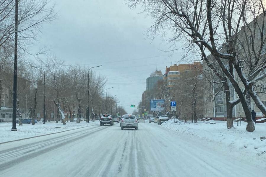 Снежный накат на дорогах: утро для жителей Благовещенска выдалось не весенним (видео)