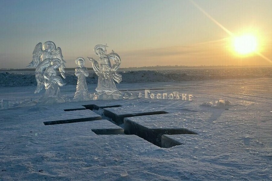 В прошлом году для жителей и гостей областного центра была организована купель, а также сделаны ледовые скульптуры с подсветкой.