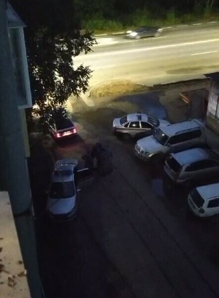 Жители близлежащих домов были привлечены на балконы, а многие даже разбужены криками, которые доносились со двора. Сразу две патрульные машины прибыли на задержание некоего мужчины, который никуда ехать не хотел. Судя по голосу, он был в состоянии опьянения.