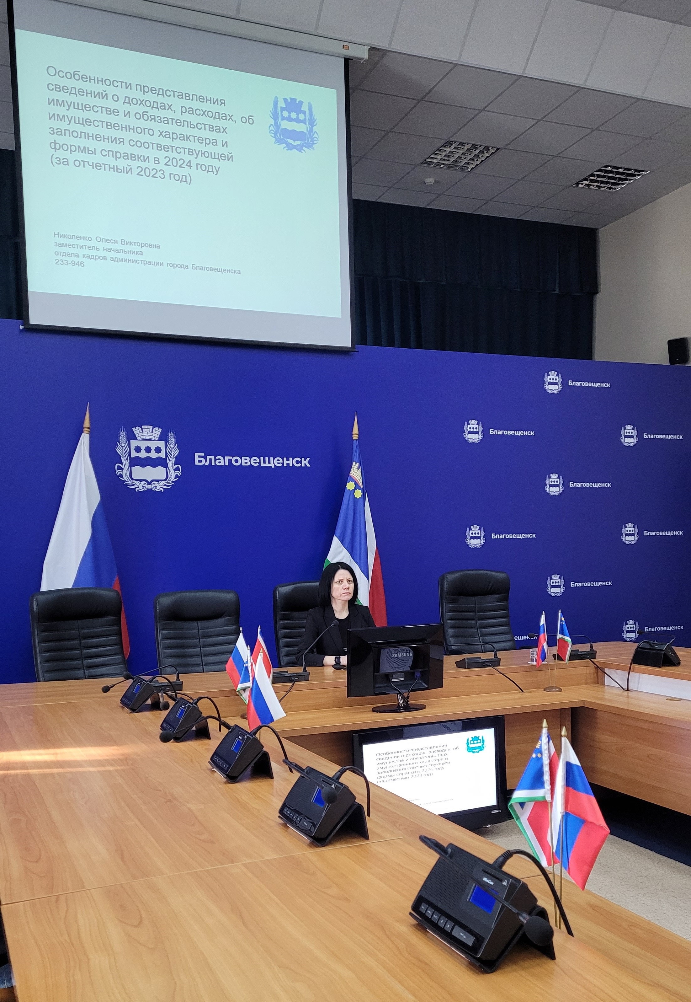В администрации Благовещенска провели обучение муниципальных служащих и руководителей муниципальных учреждений по актуальным вопросам представления сведений о доходах, расходах, об