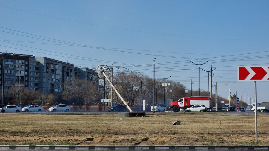«То ли порыв ветра, то ли сама - пока непонятно. Похоже, конструкция упала на провода, от этого загорелась трава. Сейчас на месте работает автокран, также пожарные ликвидируют возгорание. Автомобильное движение на кругу не перекрыто», - рассказал корреспондент Amur.life.