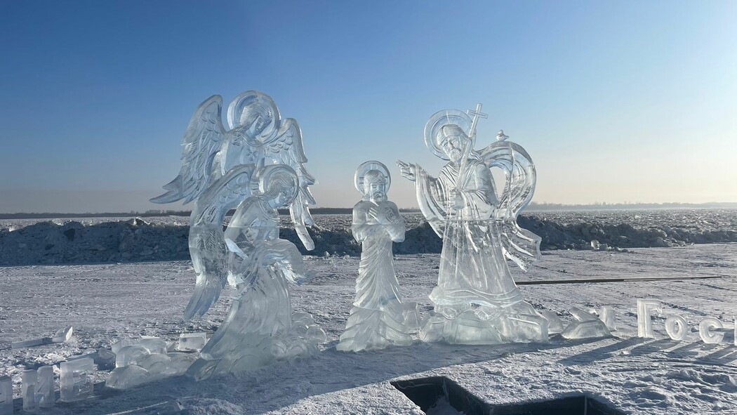 Скульптуры выросли прямо на льду замерзшей Зеи. Такой впечатляющий подарок в преддверии Крещения благовещенцам создали впервые.