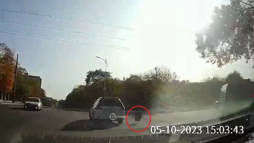 В центре Благовещенска у микроавтобуса на ходу отвалилось колесо и догнало другой автомобиль (видео)