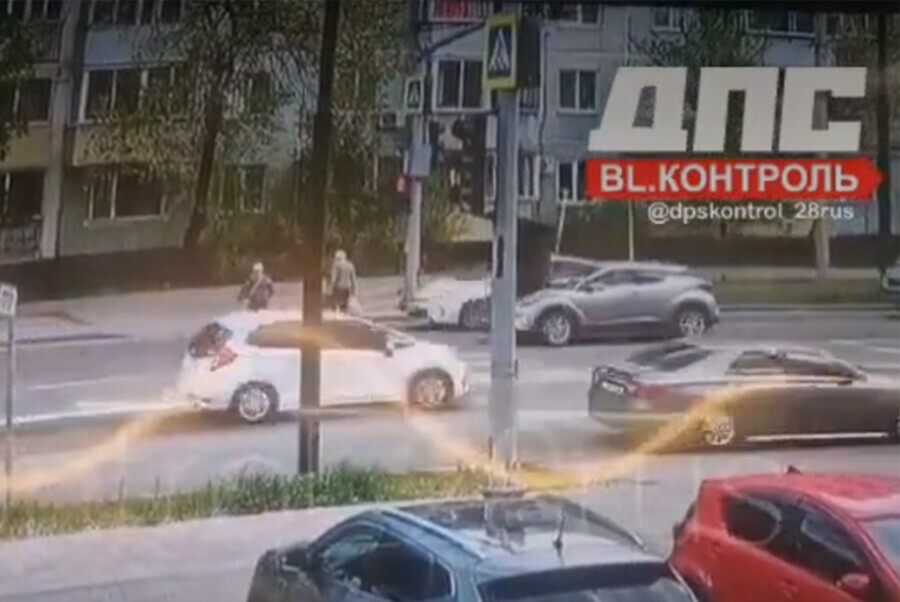 Судя по видео, которое ранее опубликовал Amur.life, автомобиль сбил еще и пожилую женщину . О ее состоянии ничего не сообщается.