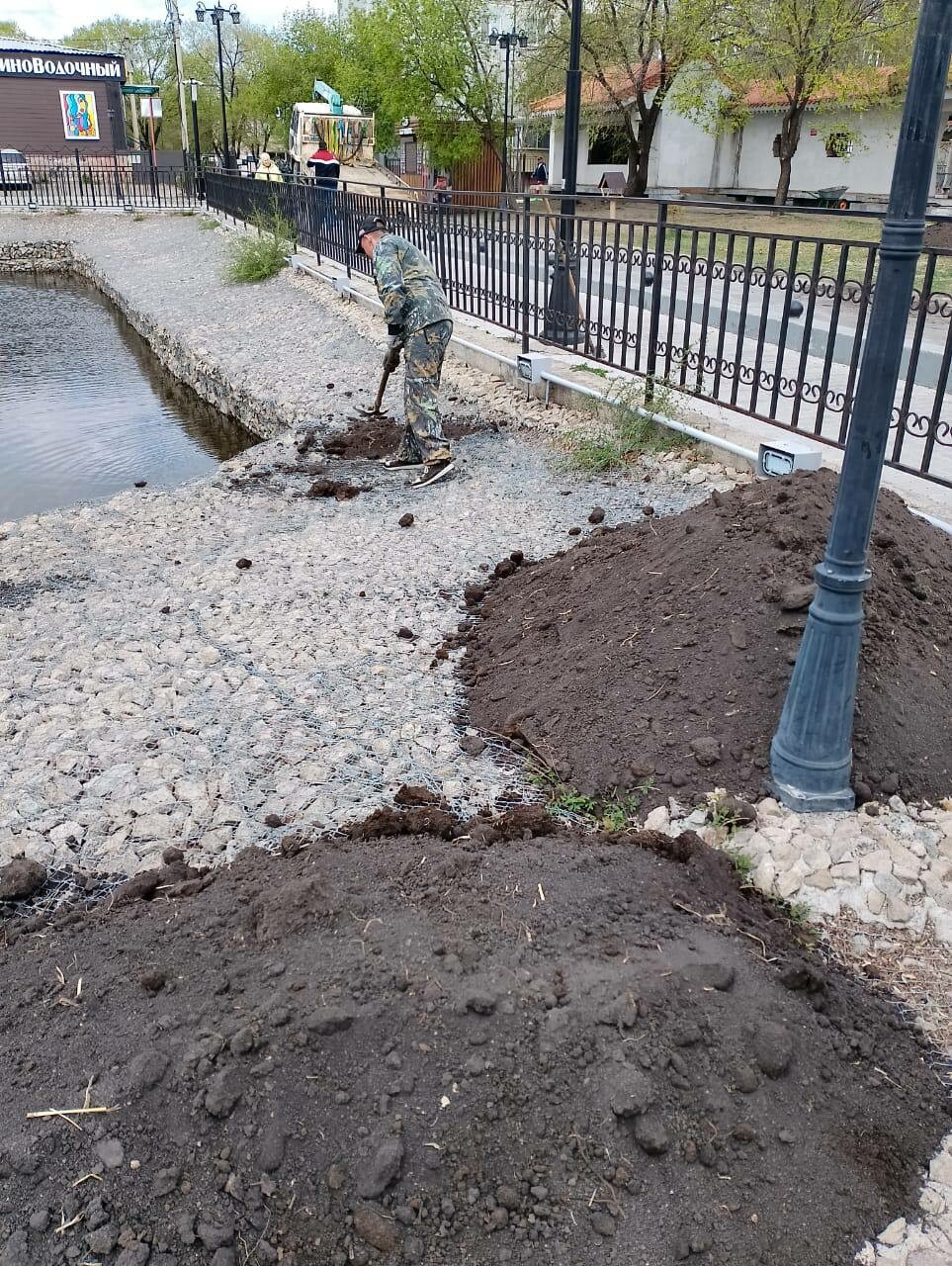 На сегодняшний день рабочие засыпали грунтом половину всей территории вокруг озера. В дальнейших планах озеленить водоем полностью.