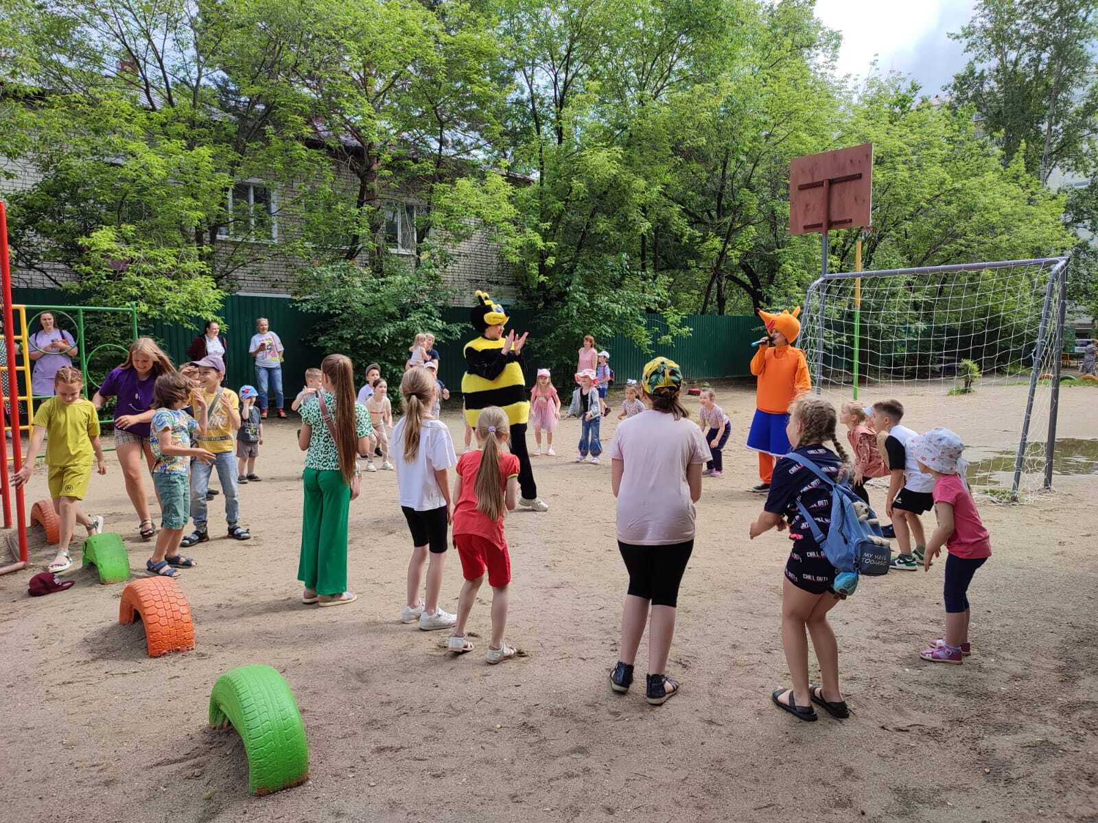 Для детей подготовили весёлые игры, конкурсы и командные соревнования. Ребята с удовольствием принимали участие во всех активностях, а в конце праздника все участники получили сладкие подарки.