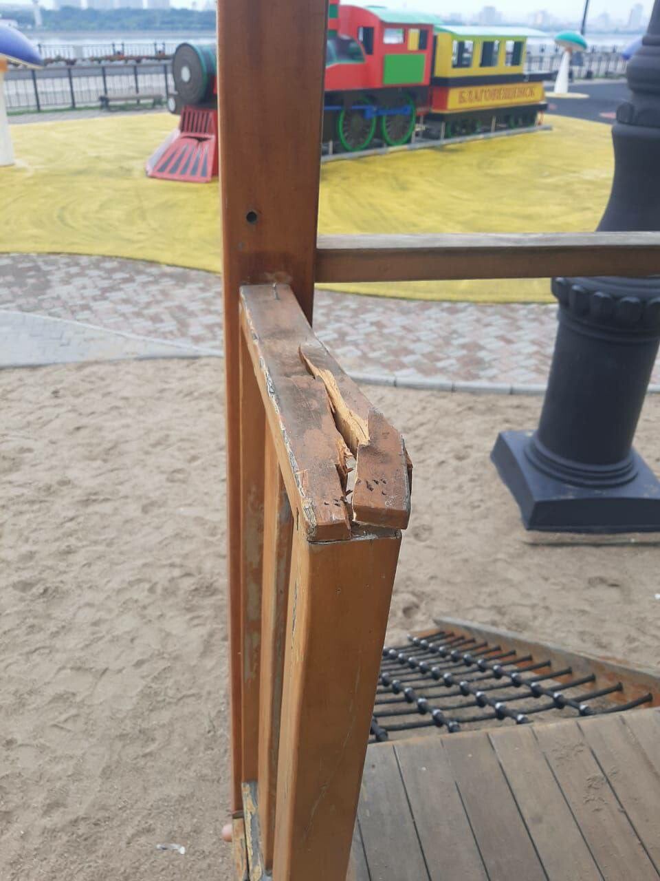Фото: мэрия Благовещенска В областном центре детская площадка снова пострадала от рук вандалов.