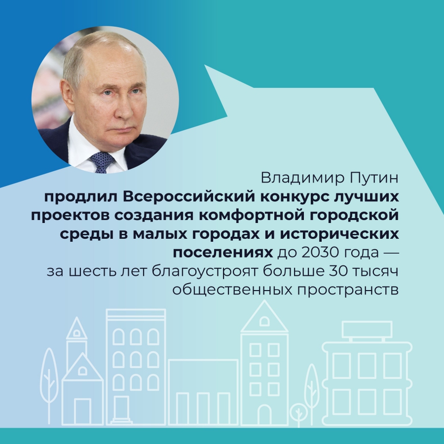 Всероссийский конкурс лучших проектов создания комфортной городской среды в малых городах и исторических поселениях будет продлен до 2030 года. Об этом объявил Президент России Вла