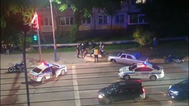 Как сообщают очевидцы, «Волга» пыталась скрыться от погони и повернула на перекрестке, где ехал мотоциклист. В результате столкновения мотоцикл отбросило на газон. Сообщается, что медицинская помощь мотоциклисту не понадобилась.