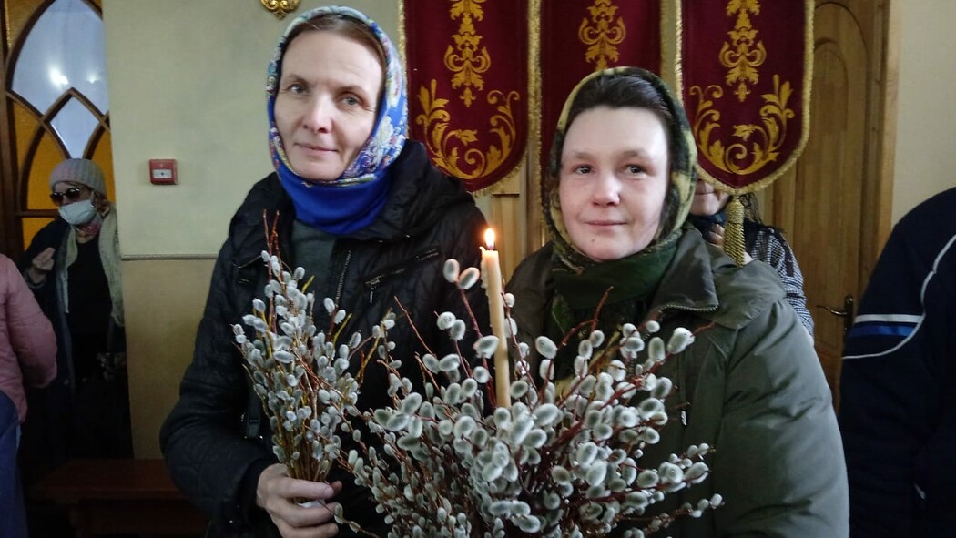 В амурских храмах людно: освящают вербу перед Вербным воскресеньем