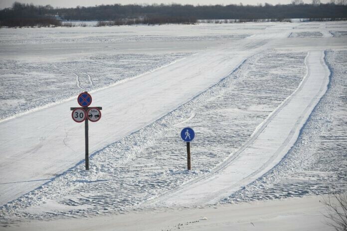 Ледовую переправу Свободный — Введеново через Зею закроют 9 марта. По обеим полосам движения по льду через реку Зея начала выходить вода.