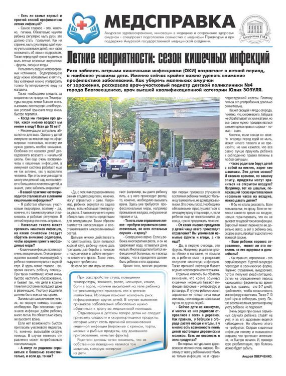 Риск заболеть острыми кишечными инфекциями (ОКИ) возрастает в летний период, а наиболее уязвимы дети. Именно сейчас крайне важно уделять внимание профилактике заболеваний. Как уберечь маленьких амурчан от заражения, рассказала врач-участковый педиатр детской поликлиники №4 города Благовещенска, врач высшей квалификационной категории Юлия Зозуля.