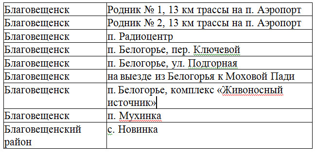 Список родников, проверенных специалистами Роспотребнадзора