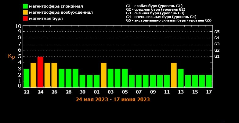 2 июня ожидается небольшой всплеск до 4 баллов, а следующий - 12 июня.