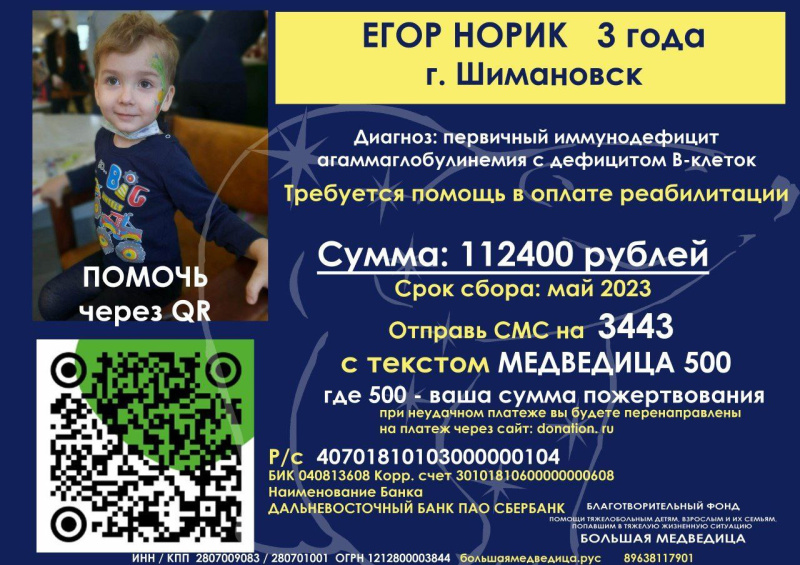 Историю четырёхлетнего Егора рассказал благотворительный фонд помощи тяжелобольным детям, взрослым и их семьям, попавшим в тяжёлую жизненную ситуацию, «Большая медведица».