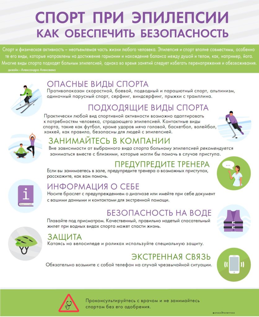 Вне зависимости от выбранного вида спорта больному эпилепсией рекомендуется заниматься вместе с близкими, которые могли бы помочь в случае приступа.