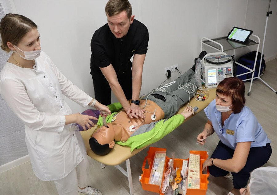 «Все медработники во время обучения в вузе или колледже проходили тему оказания первой помощи и в теории обязаны все это знать. Но без регулярной практики эти навыки, конечно, забываются. Кроме того, обстановка, в которой может потребоваться проведение сердечно-легочной реанимации, может быть самой разной – на полу, в маленькой палате, в коридоре и т.д. И от умения быстро сориентироваться, грамотно распределить ресурсы и командной работы зависит жизнь и здоровье человека. Поэтому регулярная отработка этих навыков необходима абсолютно всем медицинским работникам», – объяснил врач анестезиолог-реаниматолог, ассистент кафедры анестезиологии, реанимации, интенсивной терапии и скорой медицинской помощи Алексей Кучер.