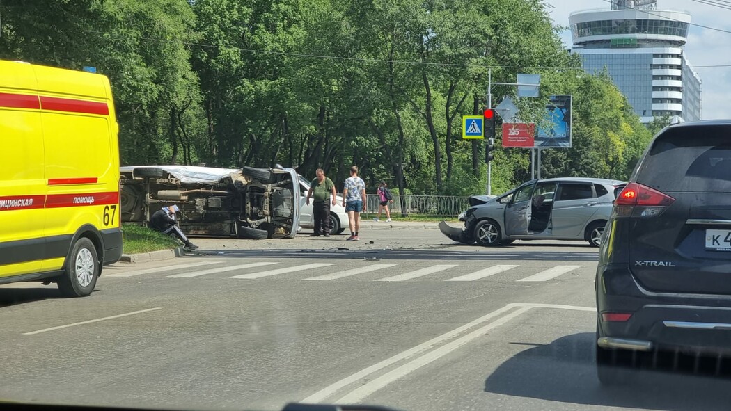 От удара микроавтобус перевернулся: жесткое ДТП произошло в центре Благовещенска (фото)