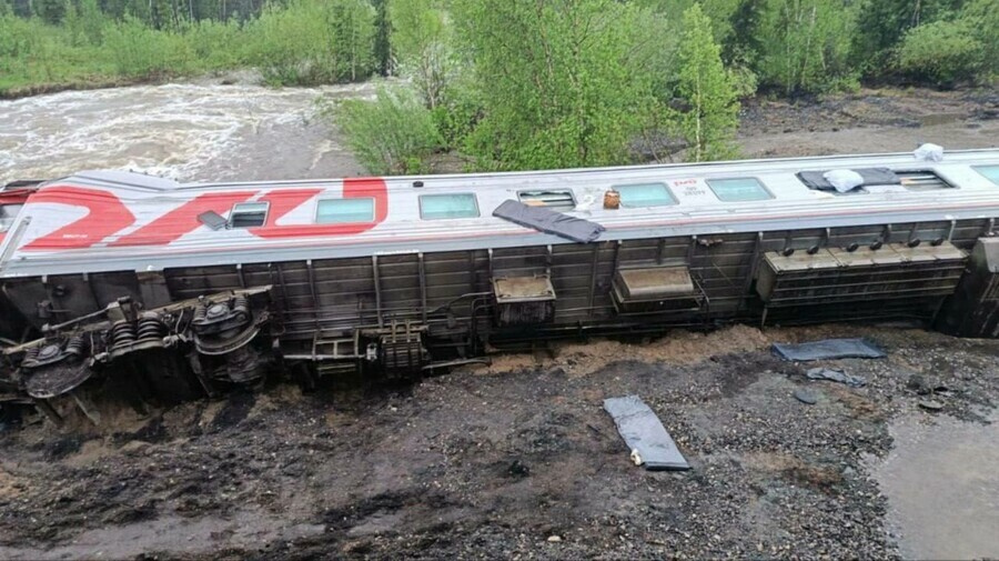 Фото: РЖД Девять вагонов пассажирского поезда Воркута - Новороссийск сошли с рельсов на перегоне Инта-1-Угольный в Республике Коми.
