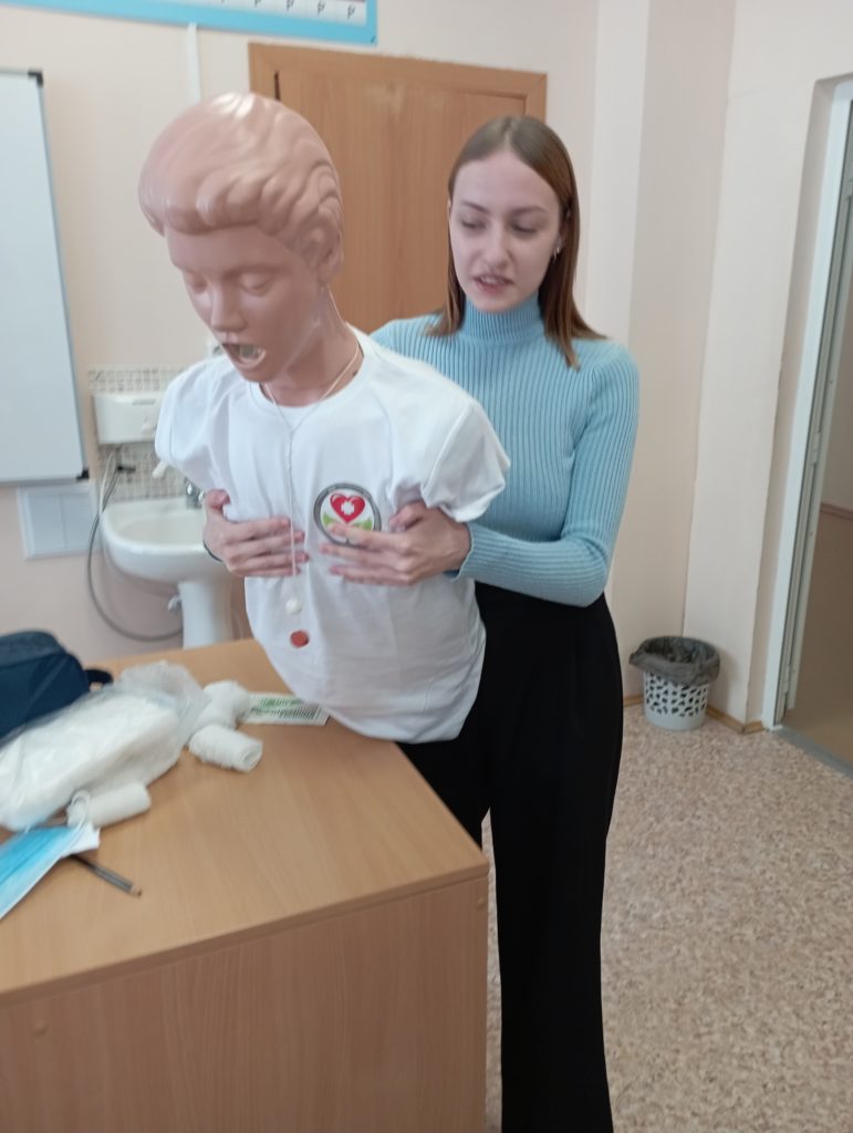 Волонтеры АМК продемонстрировали манипуляции по оказанию первой помощи при травмах, кровотечениях, ожогах, рассказали о профилактике неотложных состояний и как правильно проводить сердечно-легочную реанимацию. В практической части занятия участники отрабатывали манипуляции под руководством наставников.