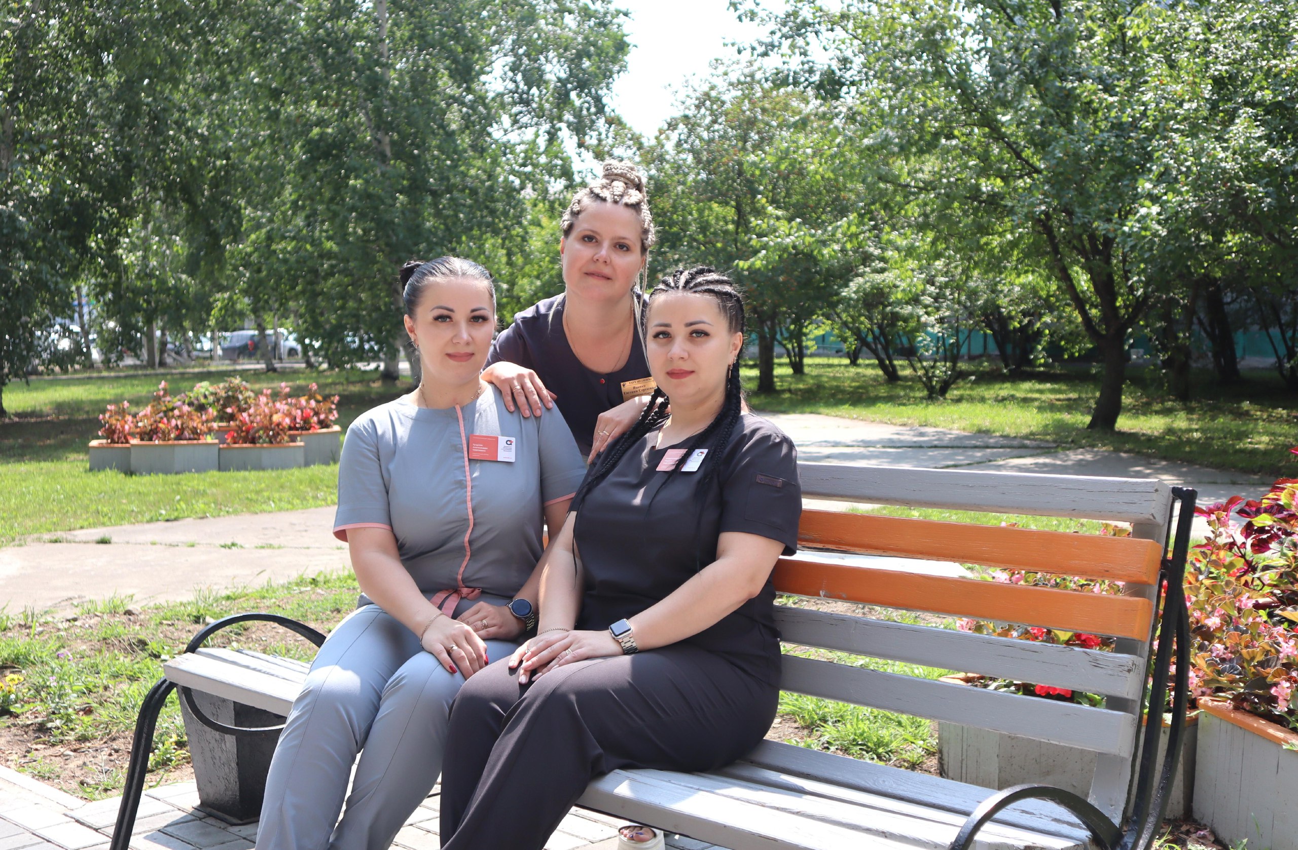 Евгения Яценко, Александра Гуцуляк и Мария Андрианова - родные сестры, которые все работают в областной больнице. Наша мама большую часть жизни работала в областной больнице в пищеблоке, а бабушка была фельдшером-лаборантом. Я любила слушать их рассказы про работу и после школы поступила в медколледж, - рассказывает старшая из сестер Евгения.