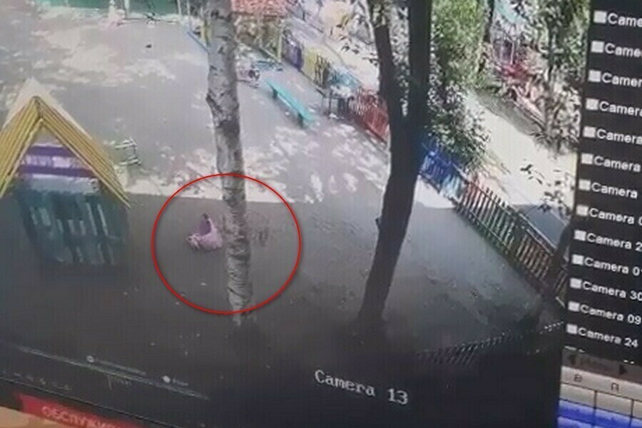 Далее ребенок падает и буквально катается по земле от боли, но все-таки встает - на этом видео обрывается. За все это время к девочке никто не подошел, других детей рядом не было. Происшествие попало на камеру наружного видеонаблюдения. На кадрах было видно, что ребенок упала и буквально каталась по земле от боли, но затем все-таки встала. За все это время к девочке никто не подошел, других детей рядом не было.