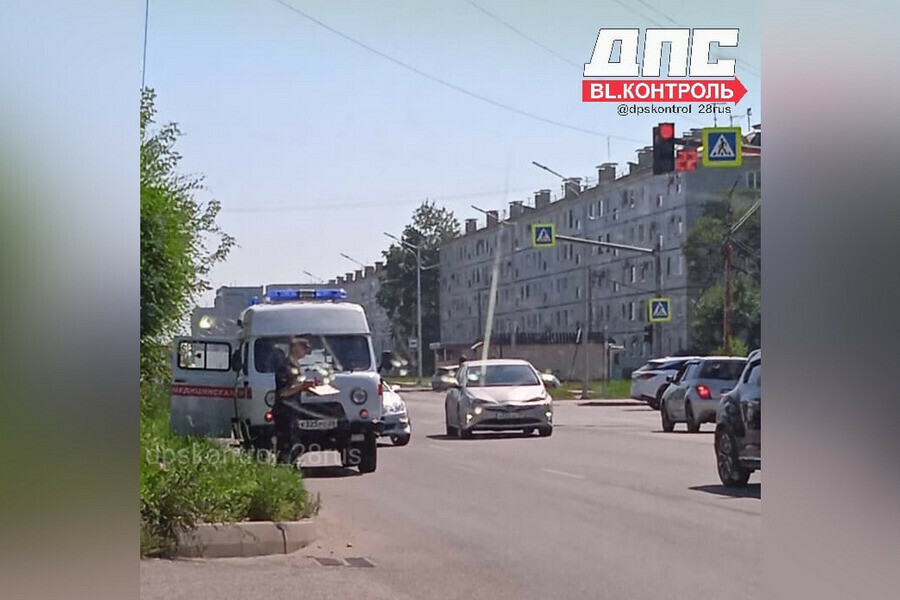 Видео с места опубликовал Telegram-канал dpskontrol_28rus . Видно, что вокруг лежащего человека стоят люди, рядом стоит находится скорой помощи. О состоянии пешехода не сообщается.
