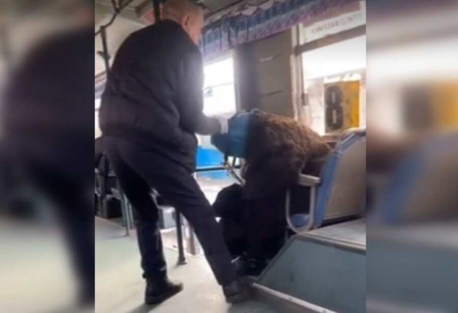 Видео, снятое в салоне автобуса, разошлось по соцсетям накануне. На нем мужчина – утверждается, что это водитель, – хватает за головной платок бабушку и стаскивает ее с сиденья, грубо побуждая ее выйти. Водителя поддерживает кондуктор: она пинает сумку пенсионерки и говорит, что женщине стоит помыться. Далее мужчина роняет бабушку на пол и стаскивает ее по ступеням из автобуса. Автор видео утверждает, что конфликт произошел из-за исходившего от пенсионерки неприятного запаха.