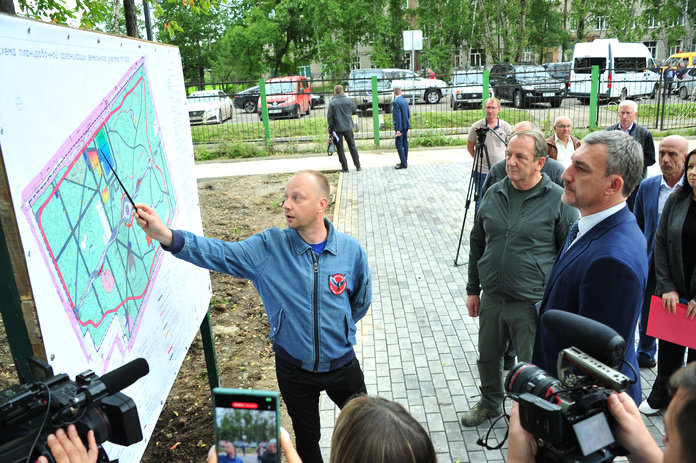 Парк - под видеонаблюдениеПервым объектом, на котором побывал губернатор, стал городской парк, где подрядчик представил схему планировочной организации участка.